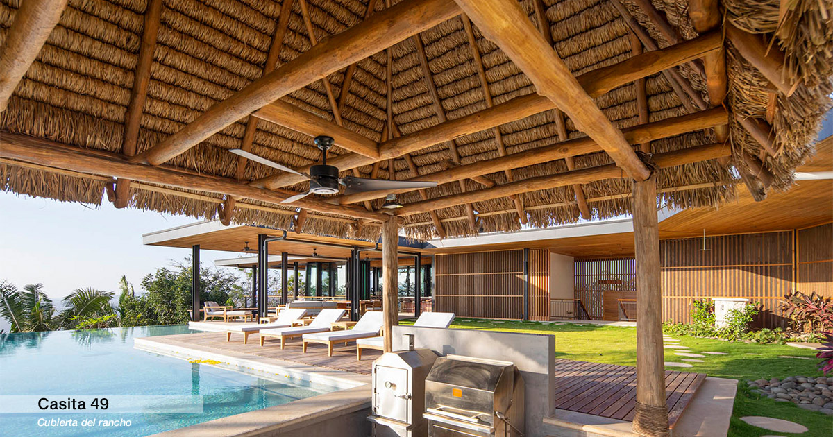 En los ranchos de New Path House y Casita 49, el tejido Boruca de zacate navajuela ofrece un resultado más denso y limpio. Sin embargo, estas estructuras reinterpretan el uso ancestral del rancho chorotega —como lugar del fogón y la conversación—, adaptándolo a una vida contemporánea más abierta al paisaje y al confort natural.
